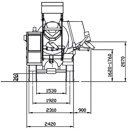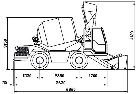 Tambur kapasitesi: 4.850 litre (1.066 gal UK – 1.281 gal US). Beton tambur çıktısı: 3,5 m³/EN. EN 206-1 SLUMP S1 sınıfında, titreşimsiz verim. Çift karıştırma vidaları, acil boşaltma kapağı. Tambur, hidrolik motor ve planet dişlilerle döner. Karıştırma ve boşaltma hızı, dizel motorun devrinden bağımsızdır. Tambur ters çevrilerek boşaltma yapılır. Karıştırma ünitesi, 2 metreden yüksek boşaltma yapmak için aracın dört bir yanına hidrolik olarak 270° döner.